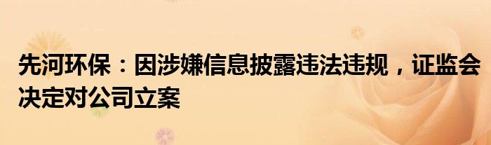 先河环保公告,因公司涉嫌信息披露违法违规,根据法律法规,证监会决定对公司立案。