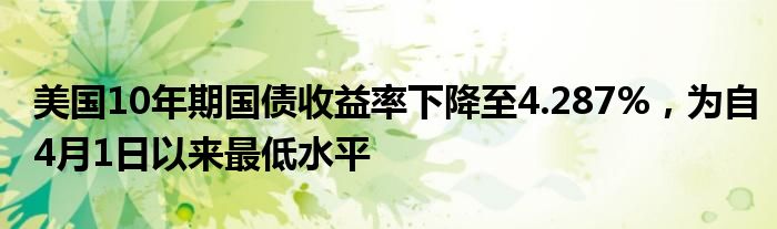 美国10年期国债收益率下降至4.287%,为自4月1日以来最低水平