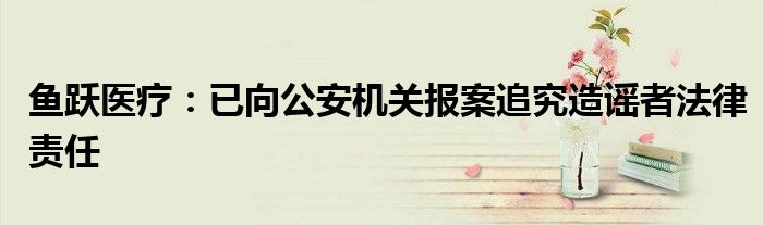 鱼跃医疗:已向公安机关报案追究造谣者法律责任