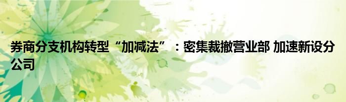 券商分支机构转型“加减法”:密集裁撤营业部 加速新设分公司