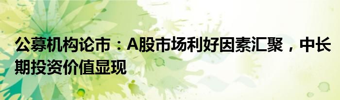 公募机构论市:A股市场利好因素汇聚,中长期投资价值显现
