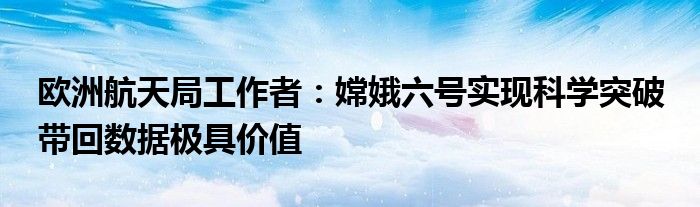欧洲航天局工作者:嫦娥六号实现科学突破 带回数据极具价值