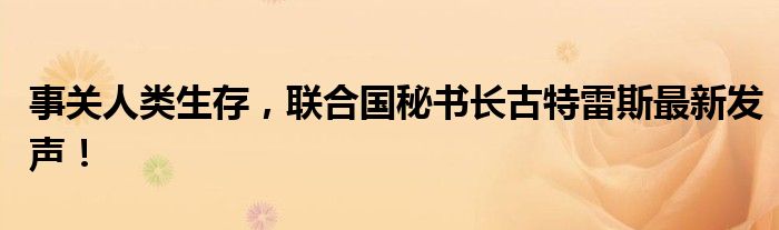 事关人类生存,联合国秘书长古特雷斯最新发声!