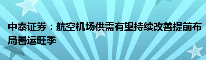 中泰证券:航空机场供需有望持续改善提前布局暑运旺季