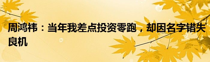 周鸿祎:当年我差点投资零跑,却因名字错失良机