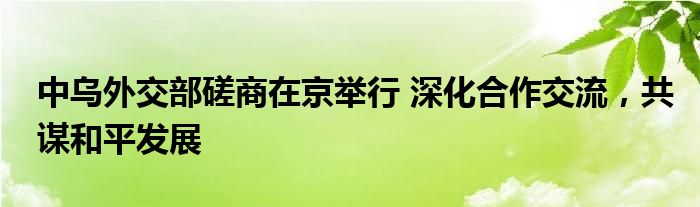 中乌外交部磋商在京举行 深化合作交流,共谋和平发展