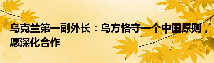 乌克兰第一副外长:乌方恪守一个中国原则,愿深化合作
