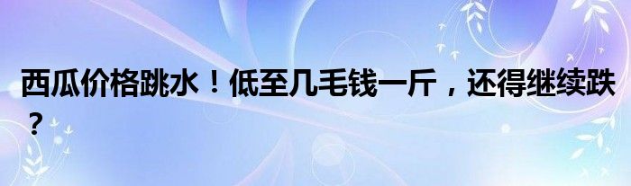 西瓜价格跳水!低至几毛钱一斤,还得继续跌?