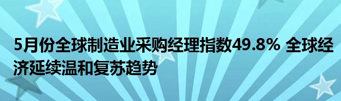 5月份全球制造业采购经理指数49.8% 全球经济延续温和复苏趋势