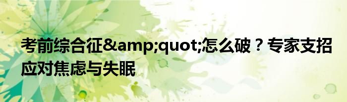 考前综合征"怎么破?专家支招应对焦虑与失眠