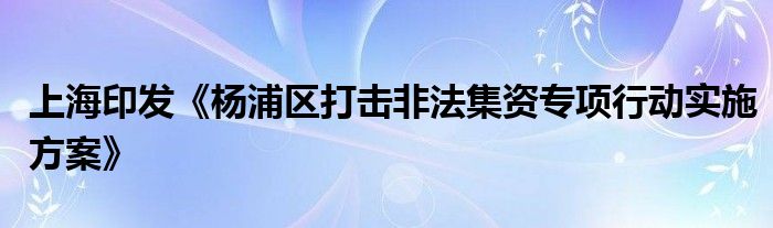 上海印发《杨浦区打击非法集资专项行动实施方案》