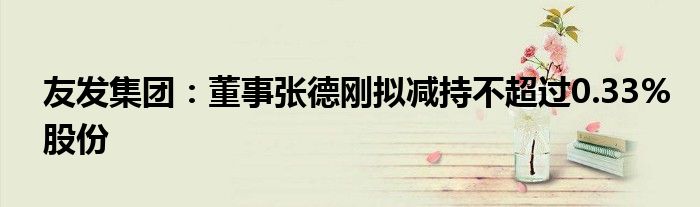 友发集团:董事张德刚拟减持不超过0.33%股份