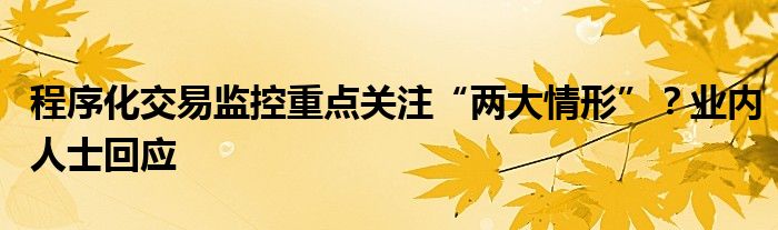 程序化交易监控重点关注“两大情形”?业内人士回应