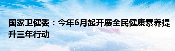 国家卫健委:今年6月起开展全民健康素养提升三年行动