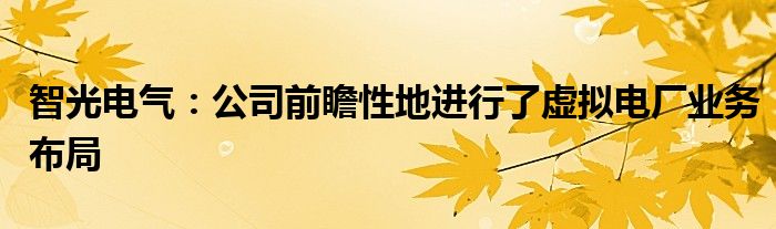 智光电气:公司前瞻性地进行了虚拟电厂业务布局