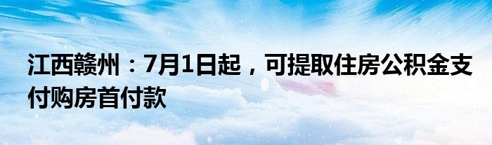 江西赣州:7月1日起,可提取住房公积金支付购房首付款