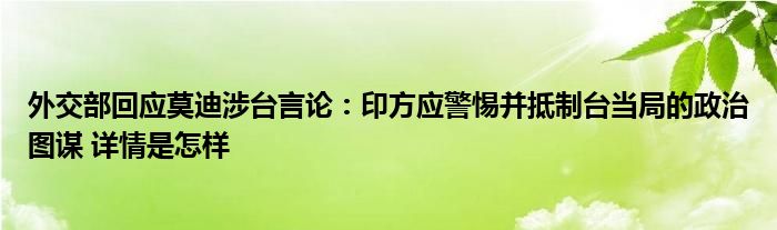 【外交部回应莫迪涉台言论:印方应警惕并抵制台当局的政治图谋】大家可以一起来了解一下这是什么情况!