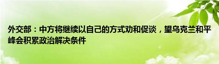 外交部:中方将继续以自己的方式劝和促谈,望乌克兰和平峰会积累政治解决条件
