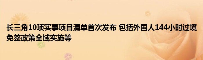 长三角10项实事项目清单首次发布 包括外国人144小时过境免签政策全域实施等