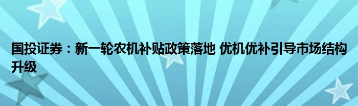 国投证券:新一轮农机补贴政策落地 优机优补引导市场结构升级