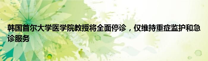 韩国首尔大学医学院教授将全面停诊,仅维持重症监护和急诊服务