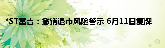 *ST富吉:撤销退市风险警示 6月11日复牌