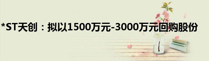 *ST天创公告,拟以1500万元-3000万元回购股份,回购价格不超过人民币4.91元/股。
