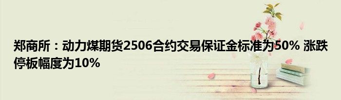 郑商所:动力煤期货2506合约交易保证金标准为50% 涨跌停板幅度为10%