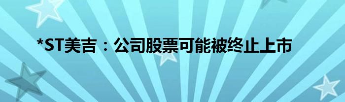 *ST美吉:公司股票可能被终止上市