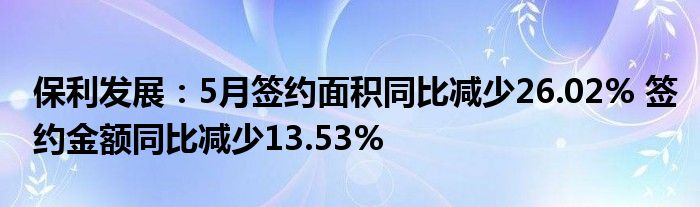 保利发展:5月签约面积同比减少26.02% 签约金额同比减少13.53%