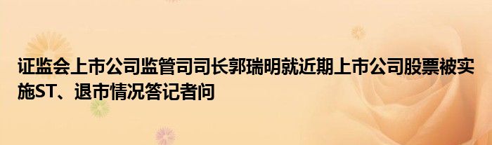 证监会上市公司监管司司长郭瑞明就近期上市公司股票被实施ST、退市情况答记者问