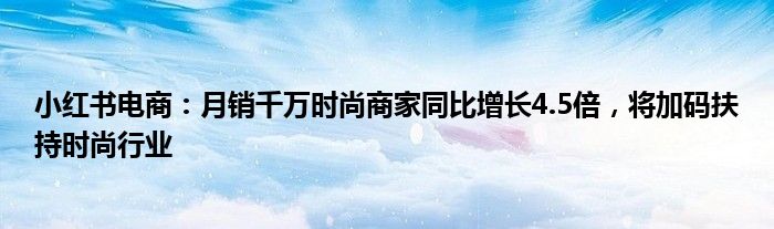 小红书电商:月销千万时尚商家同比增长4.5倍,将加码扶持时尚行业