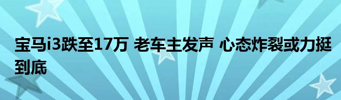 宝马i3跌至17万 老车主发声 心态炸裂或力挺到底