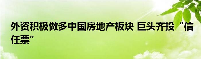 外资积极做多中国房地产板块 巨头齐投“信任票”