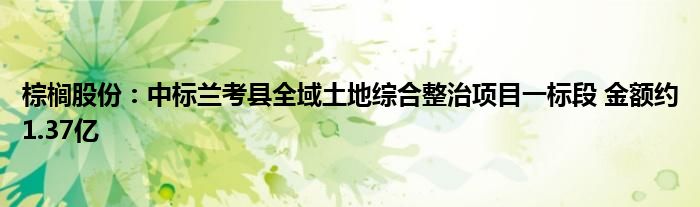 棕榈股份:中标兰考县全域土地综合整治项目一标段 金额约1.37亿