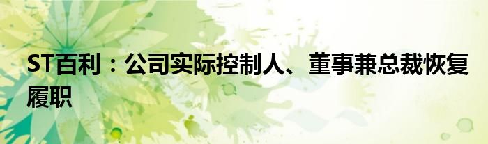ST百利:公司实际控制人、董事兼总裁恢复履职
