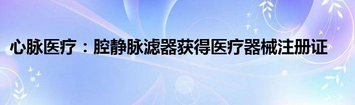 心脉医疗:腔静脉滤器获得医疗器械注册证