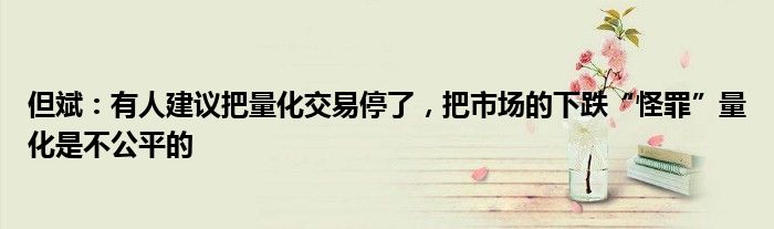 但斌:有人建议把量化交易停了,把市场的下跌“怪罪”量化是不公平的