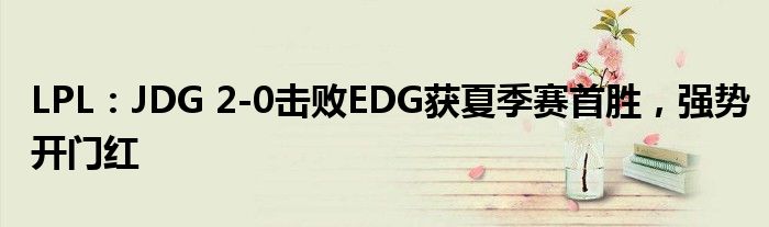 LPL:JDG 2-0击败EDG获夏季赛首胜,强势开门红