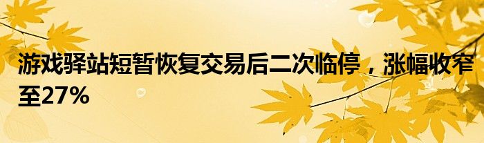 游戏驿站短暂恢复交易后二次临停,涨幅收窄至27%。