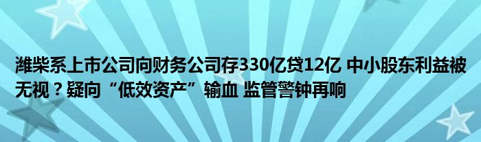潍柴系上市公司向财务公司存330亿贷12亿 中小股东利益被无视?疑向“低效资产”输血 监管警钟再响