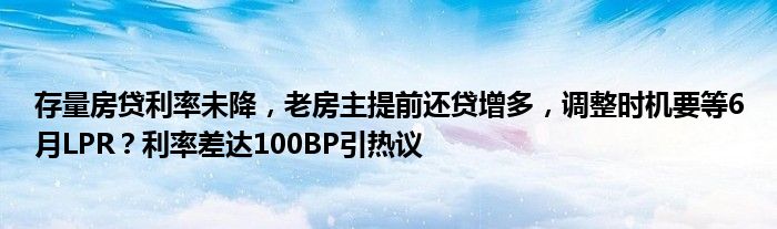 存量房贷利率未降,老房主提前还贷增多,调整时机要等6月LPR?利率差达100BP引热议