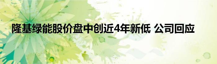 隆基绿能股价盘中创近4年新低 公司回应