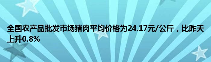 全国农产品批发市场猪肉平均价格为24.17元/公斤,比昨天上升0.8%