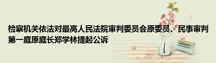 检察机关依法对最高人民法院审判委员会原委员、民事审判第一庭原庭长郑学林提起公诉