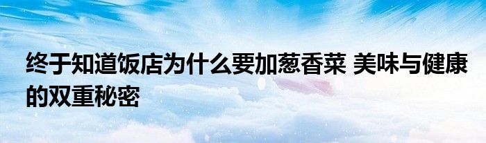 终于知道饭店为什么要加葱香菜 美味与健康的双重秘密