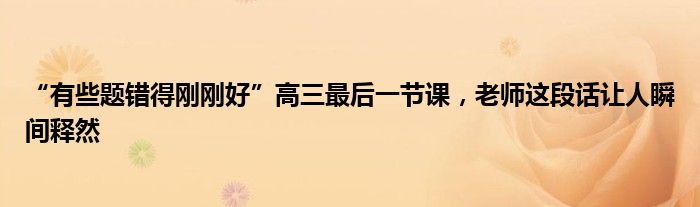 “有些题错得刚刚好”高三最后一节课,老师这段话让人瞬间释然