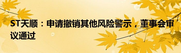ST天顺:申请撤销其他风险警示,董事会审议通过