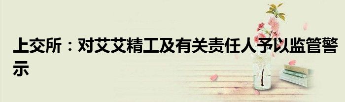 上交所:对艾艾精工及有关责任人予以监管警示