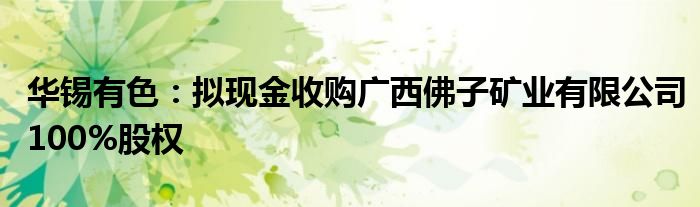 华锡有色:拟现金收购广西佛子矿业有限公司100%股权